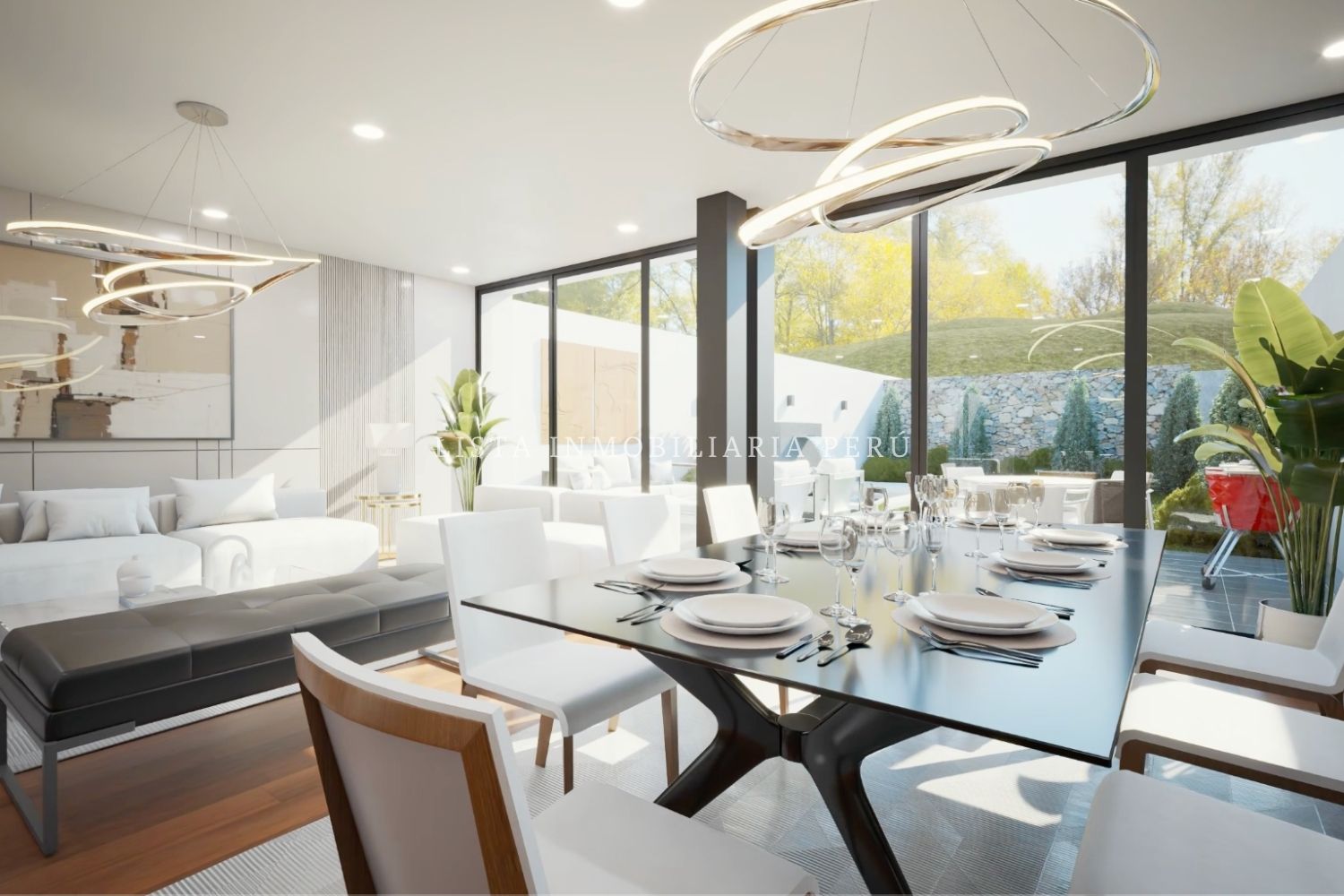 Primer Piso: Hall de ingreso, sala, comedor principal, baño de visitas, cocina cerrada con comedor de diario, alacena.Piscina, jardín, terraza y zona de parrilla.2 Estacionamientos en paralelo.