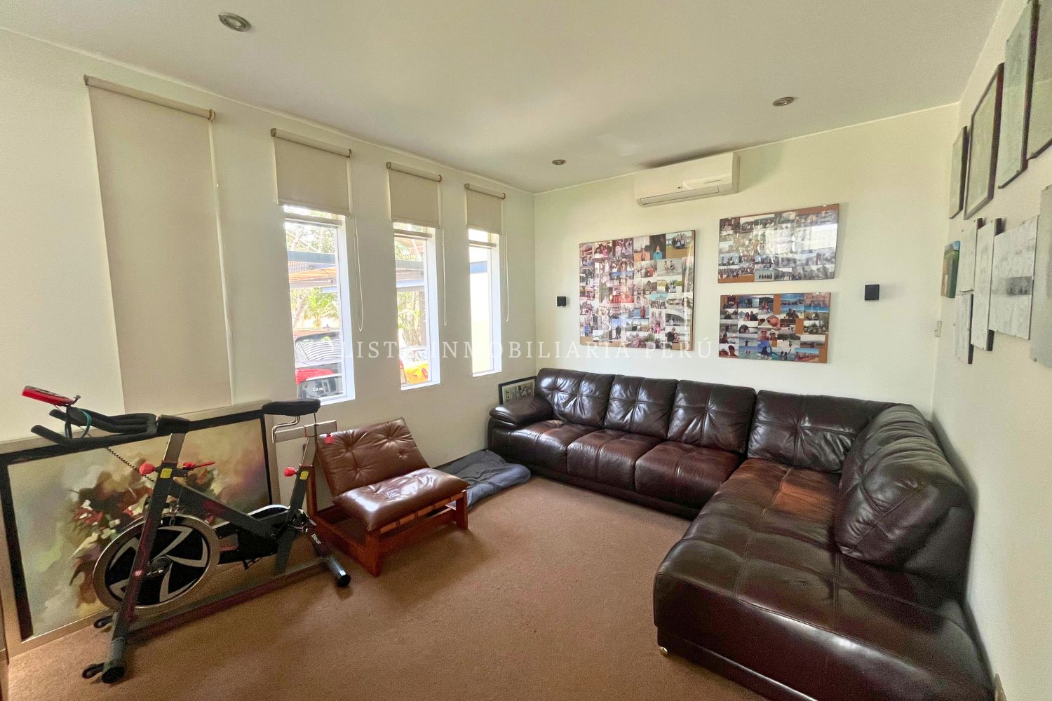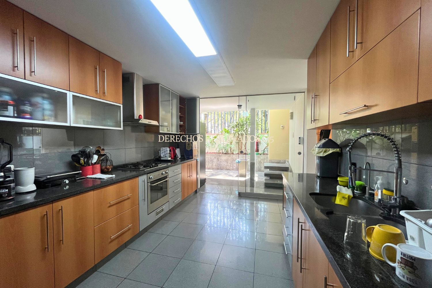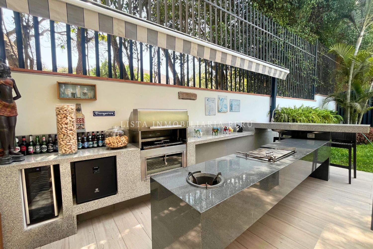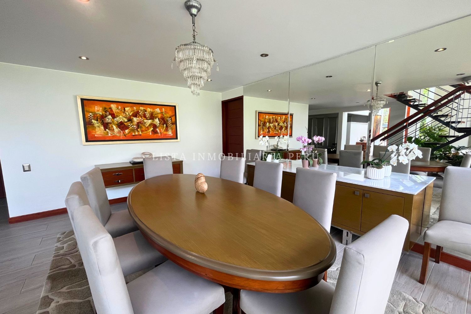 Primer piso: Hall de ingreso, techos doble altura, sala principal, comedor principal, cocina cerrada con comedor de diario, sala de estar, baño de visitas.Amplia terraza con área de BBQ, lindo jardín.Gimnasio con baño incorporado, posible 5to dormitorio.4 Estacionamientos en paraleloÁrea de servicio: Cuarto y baño de servicio, patio, lavandería