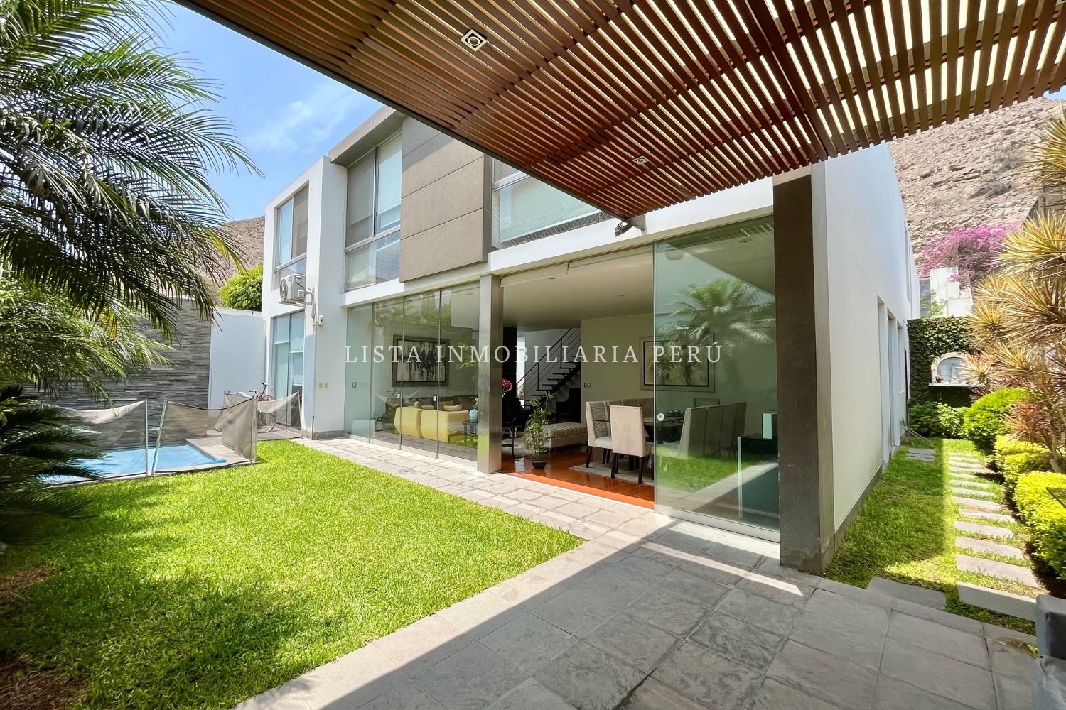 Terraza con área de parrilla y techo sol y sombra
